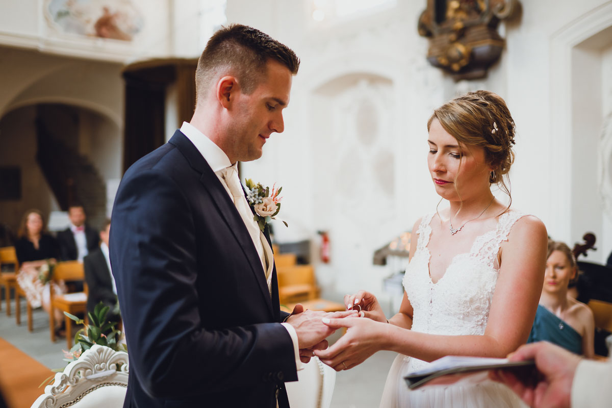 Die standesamtliche Trauung fand im prachtvollen Schloss Mainau statt. Direkt im Anschluss ging es zur kirchlichen Trauung in die wunderschöne Kirche St. Marien. Zwei Trauungen an einem Tag und an zwei so besonderen Orten – das war ein Highlight, nicht nur für das Brautpaar, sondern auch für mich als Fotograf. Leider kann ich euch, wie bereits erwähnt, nur Fotos vom Brautpaar selbst zeigen. Doch ich kann sagen, dass beide Zeremonien einfach wunderschön waren. Besonders die Kirche St. Marien beeindruckt mit ihrer Helligkeit und bietet eine perfekte Kulisse für romantische Hochzeitsfotos.