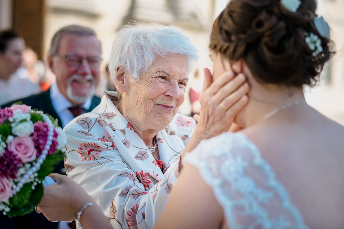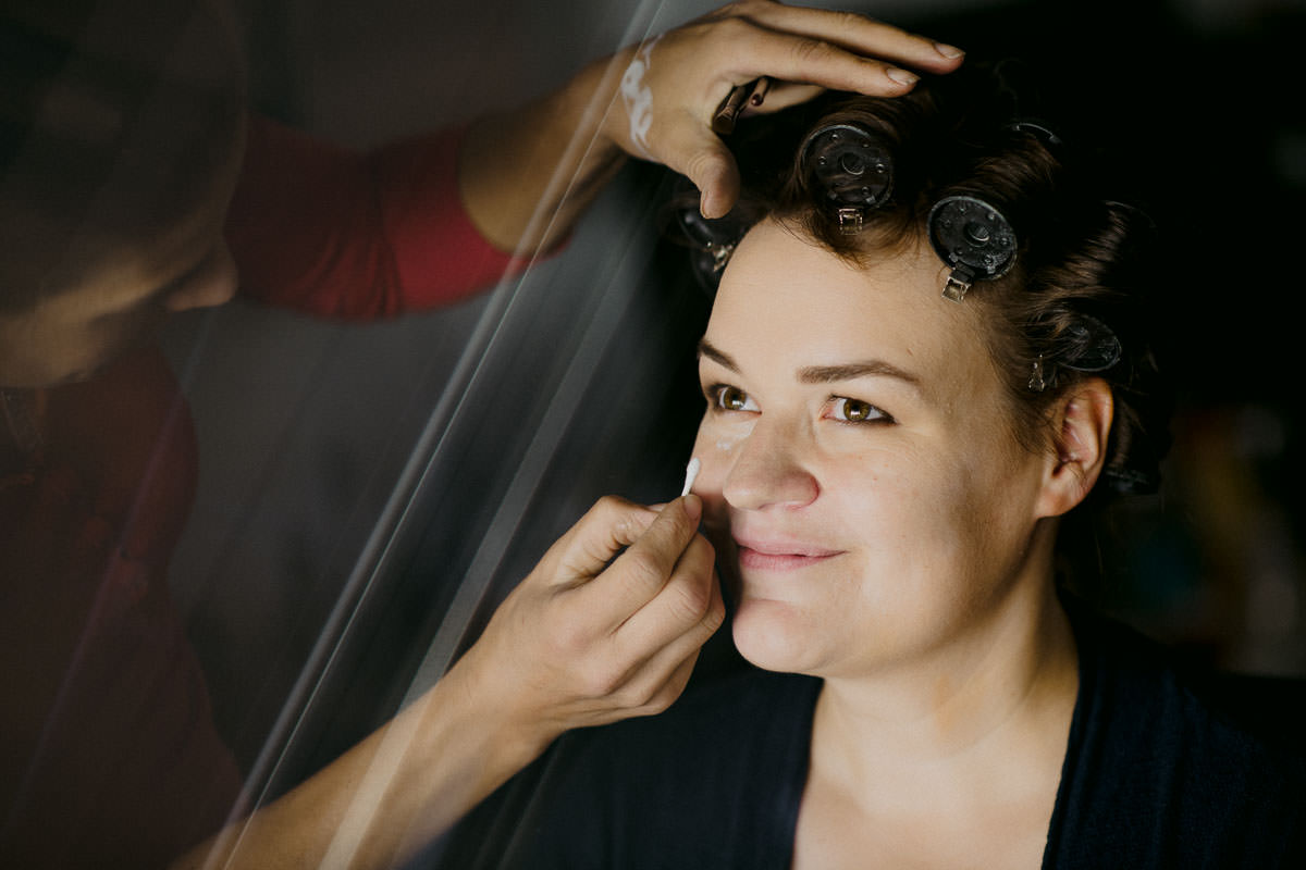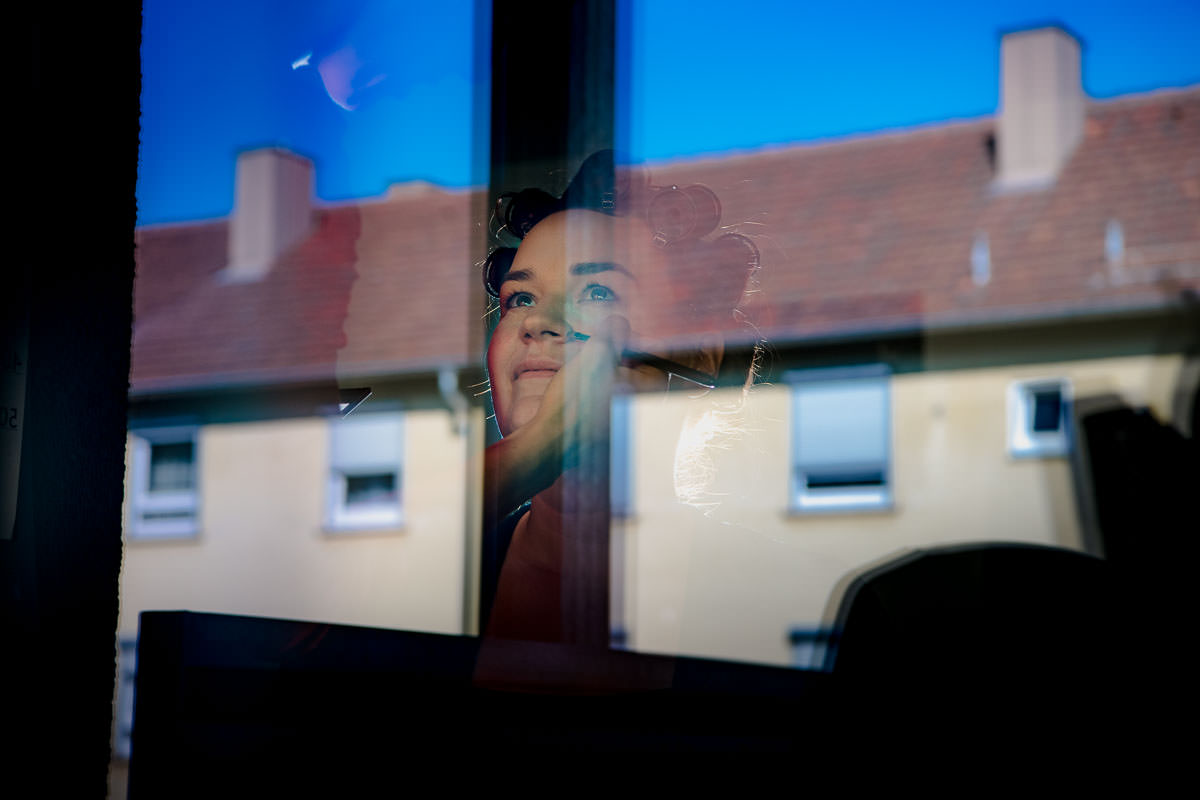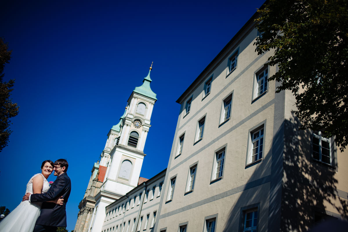 Das getting ready, bzw. die Brautvorbereitungen fanden in der Wohnung der beiden in Ravensburg statt. Begleitet durch ihre Trauzeugin und der Stylistin war dies ein sehr angenehmer und ruhiger Start in den Tag. Im Anschluss wurde die Braut durch ihren Mann abgeholt, der noch ein wenig Zeit draußen warten musste, bis die Braut fertig war. Nach dem First Look, sind wir für die Portraitfotos aufgebrochen. Diese haben wir in der Nähe der Klosterkirche Weißenau gemacht.
