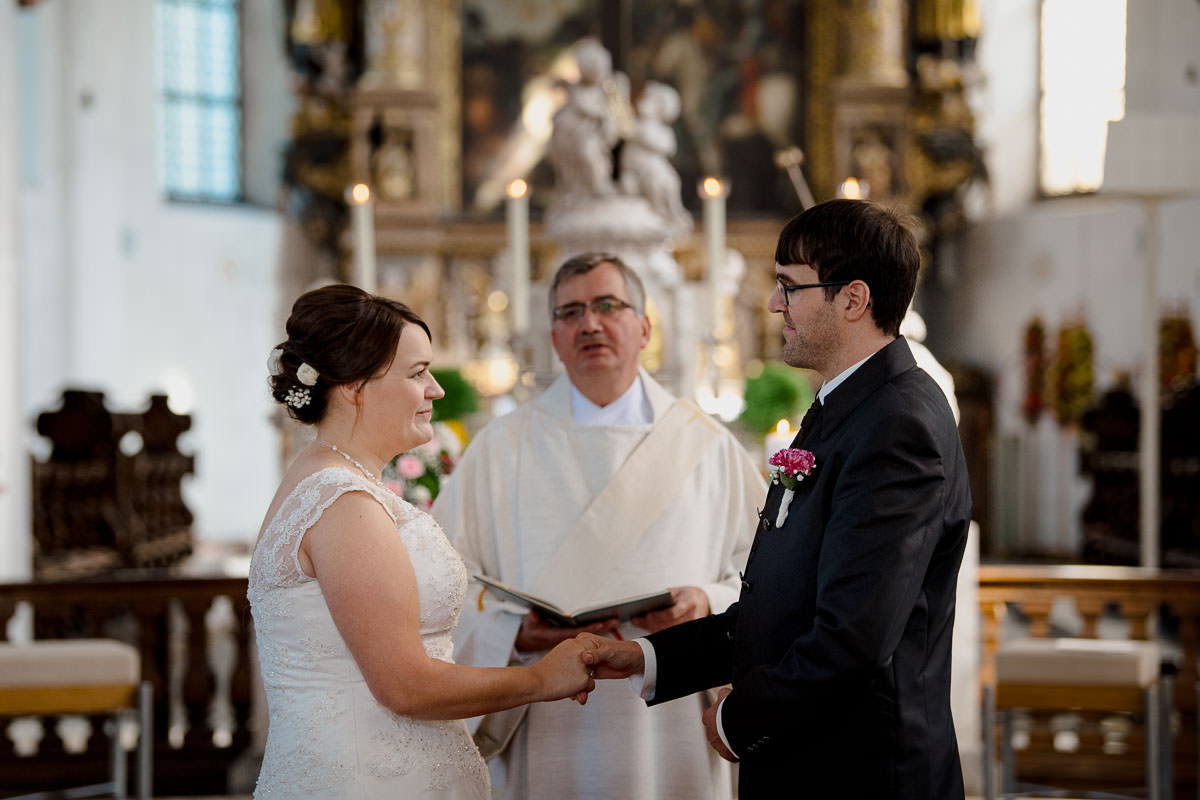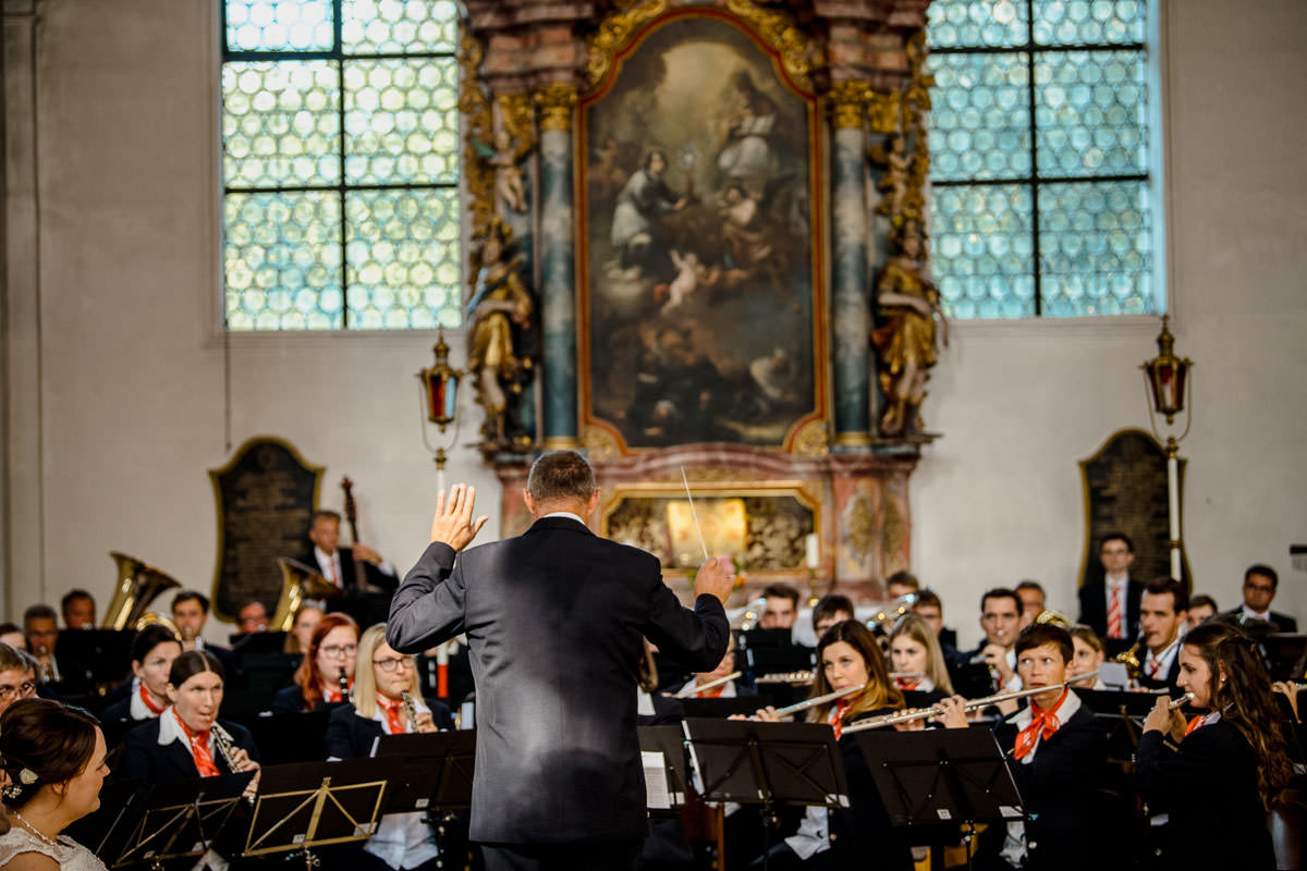 Die kirchliche Trauung fand in der Klosterkirche des Klosters Weißenau statt. In der Pfarrkirche St. Petrus und Paulus. Die Braut spielt im Orchester. Deswegen war auch der Großteil des Orchesters in der Kirche anwesend und hat die Trauung musikalisch begleitet. Und das war richtig was fürs feeling. Gänsehaut pur, sag ich euch. Das hat nicht nur die Braut emotional sehr bewegt, sondern auch alle anwesendem inklusive mir. Ein sehr schöner und emotionaler Gottesdienst.