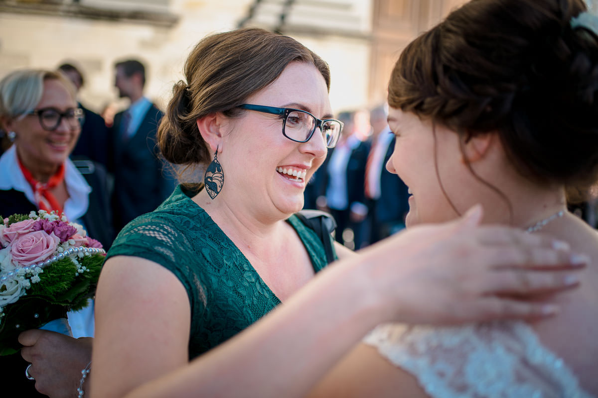 Der anschliessende Sektempfang wurde auf dem Platz vor der Klosterkirche gemacht. Viele Gäste und Freunde sind gekommen um die Trauung der beiden mitzuerleben und zu gratulieren.