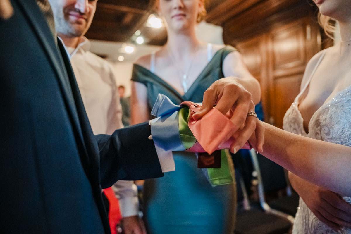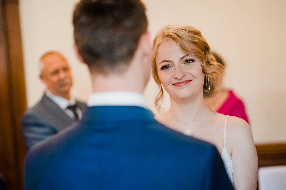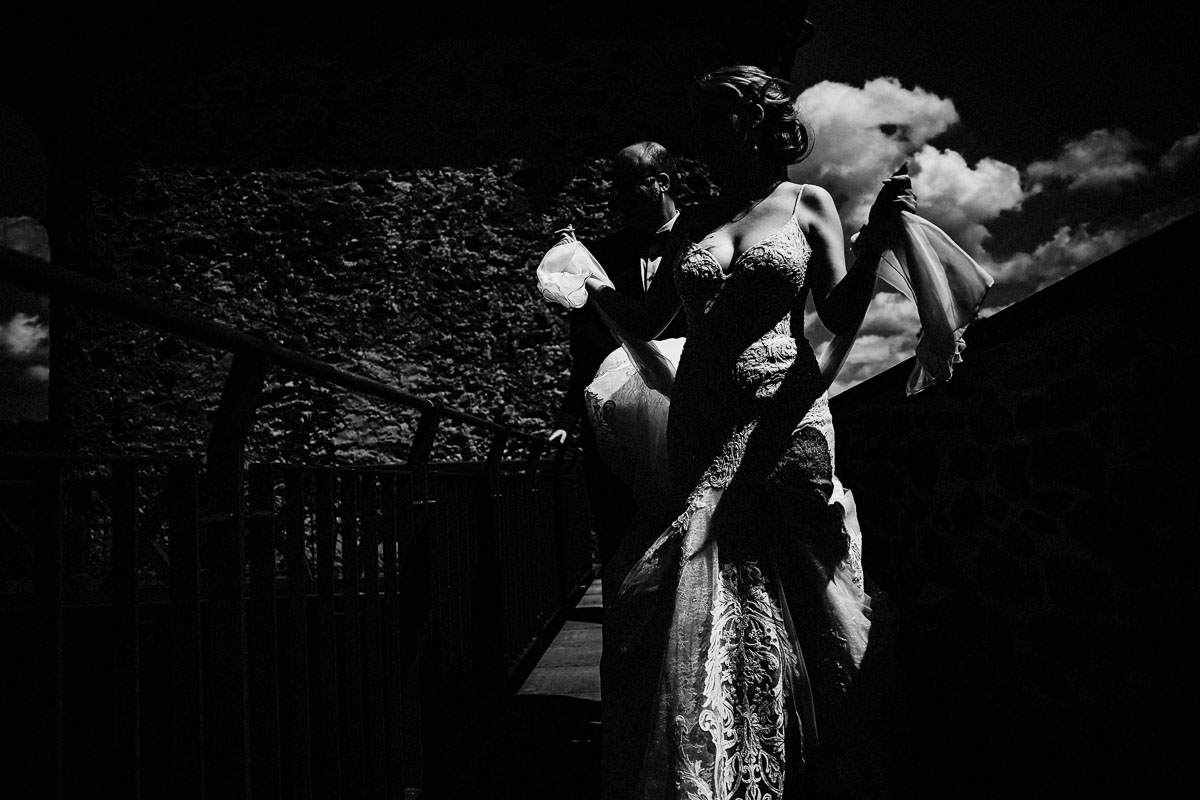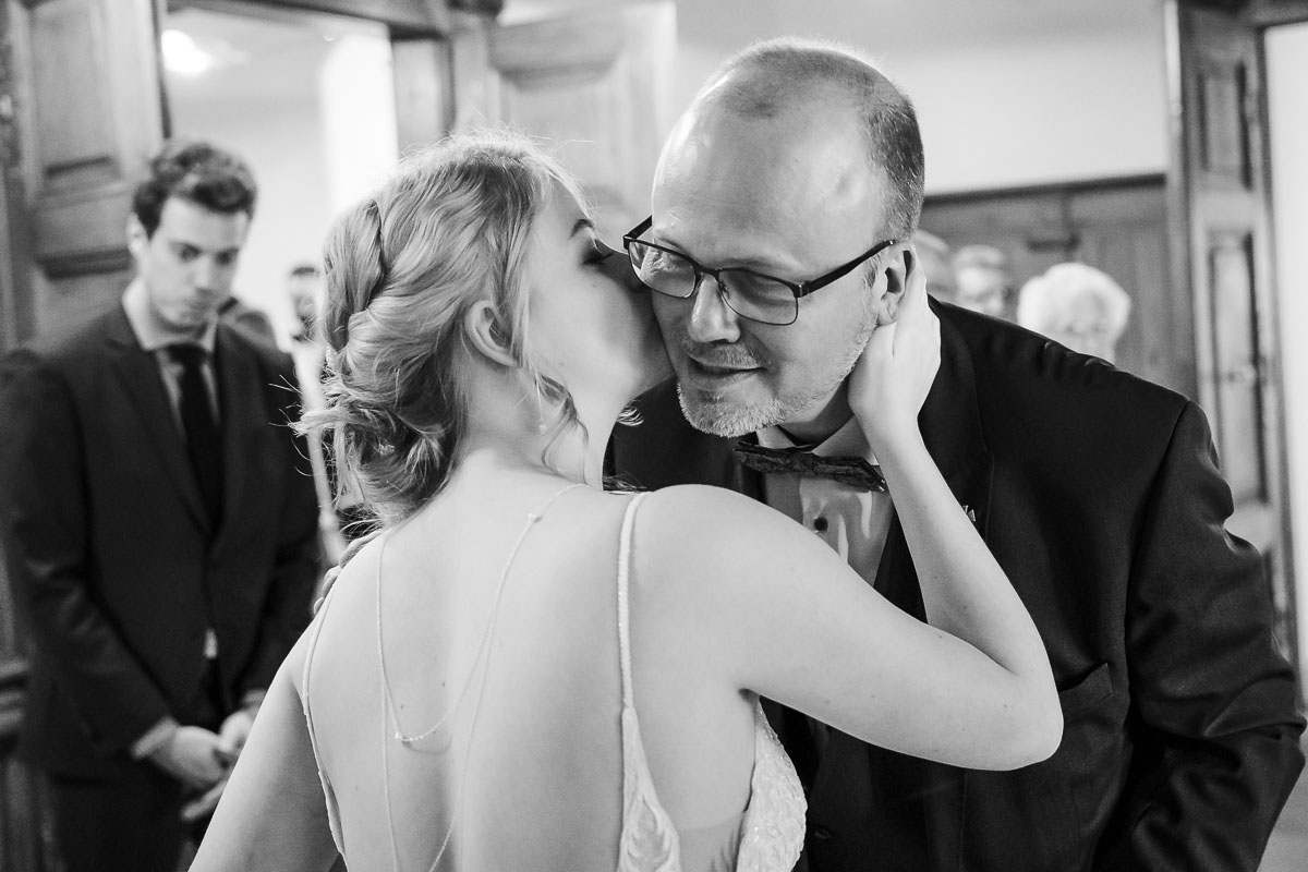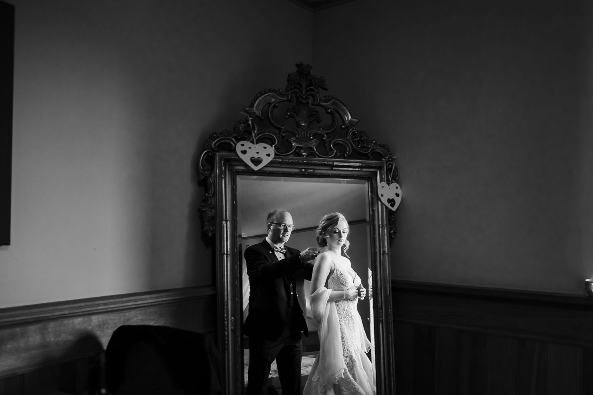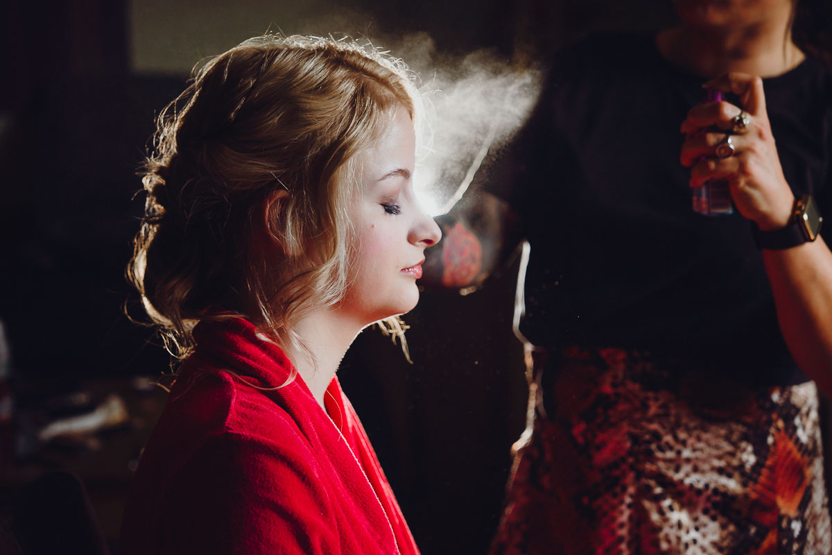 Der Tag begann mit den Vorbereitungen im Schloss. Ich hatte das Privileg, den Bräutigam beim Ankleiden zu fotografieren , bevor wir zum Brautstyling übergingen. Die Lichtverhältnisse während des Stylings waren fast optimal, was mir ermöglichte, mit verschiedenen Effekten zu spielen und ein paar dramatische Momente einzufangen.