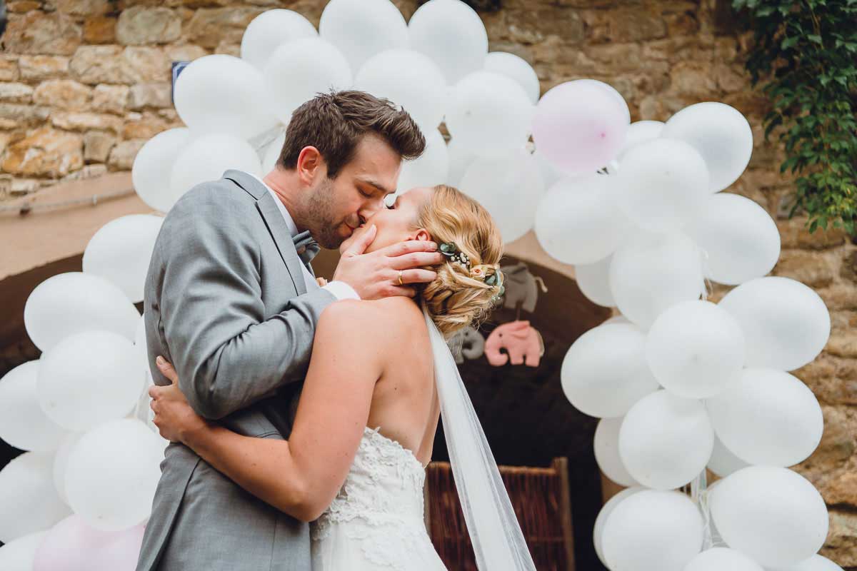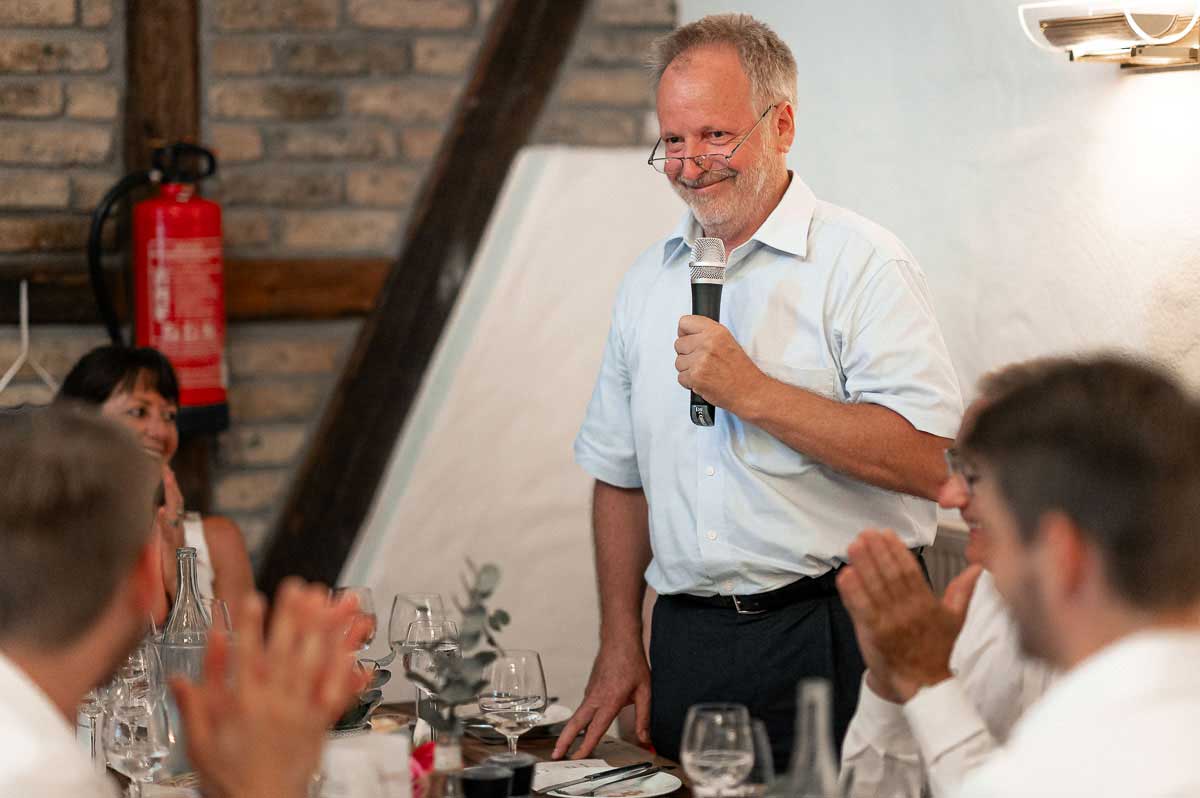 Nach der Trauung und einem ausgiebigen Paarshooting in den Weinbergen begann der Abend. Die Feier fand zunächst im rustikalen Heuboden statt. Toskana-Stil Dekoration schuf eine warme, gemütliche Atmosphäre. Alle Altersgruppen fühlten sich in diesem tollen Ambiente sofort wohl. Das ist die Basis für ungezwungene und tolle Hochzeitsfotos. Die Gäste genossen das Zusammensein nachhaltig. Doch hier war mein Tag zu Ende und das Brautpaar hat ohne fotografische Unterstützung weitergefeiert.