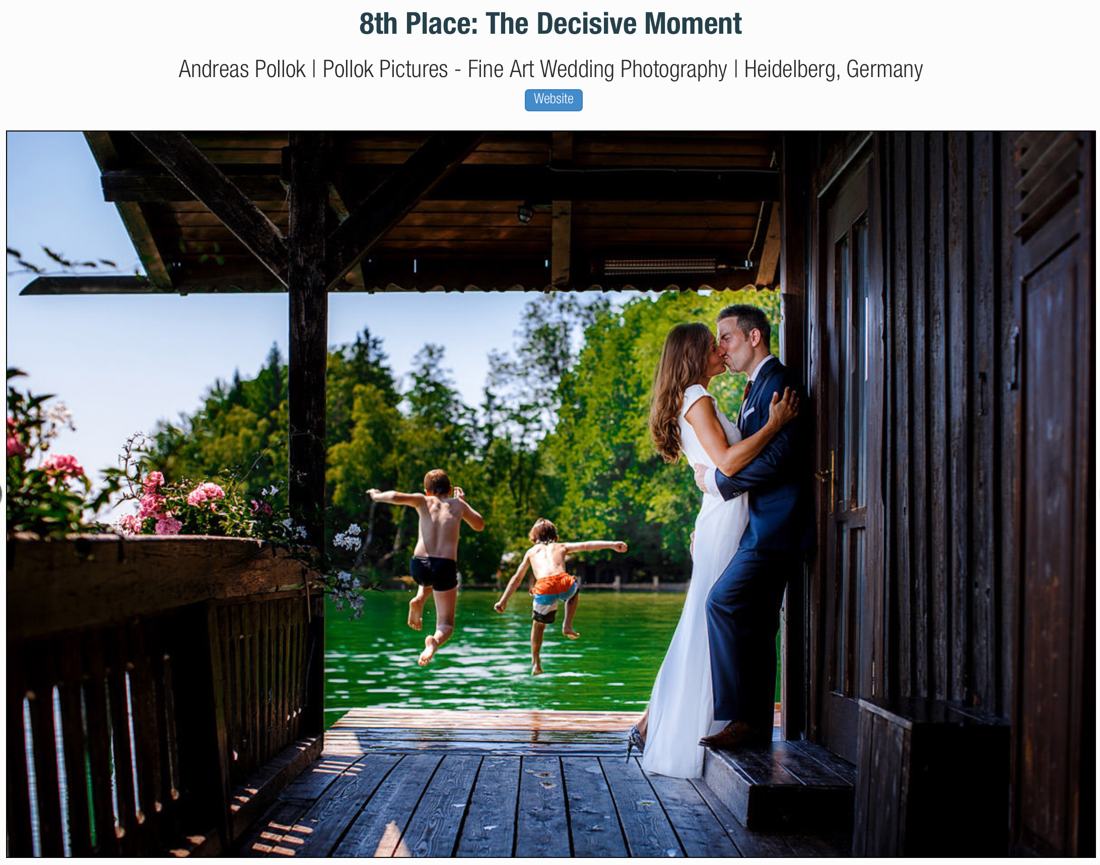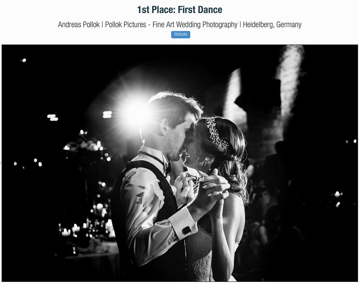 JA was für eine Freude, bereits zum zweiten Mal in Folge konnte ich beim aktuellen Contest der ISPWP eine Platzierung in den TOP 20, der weltweit besten Hochzeitsfotografen ergattern. Vier meiner Bilder wurden ausgezeichnet, darunter auch ein erster Platz in der Kategorie First Dance.