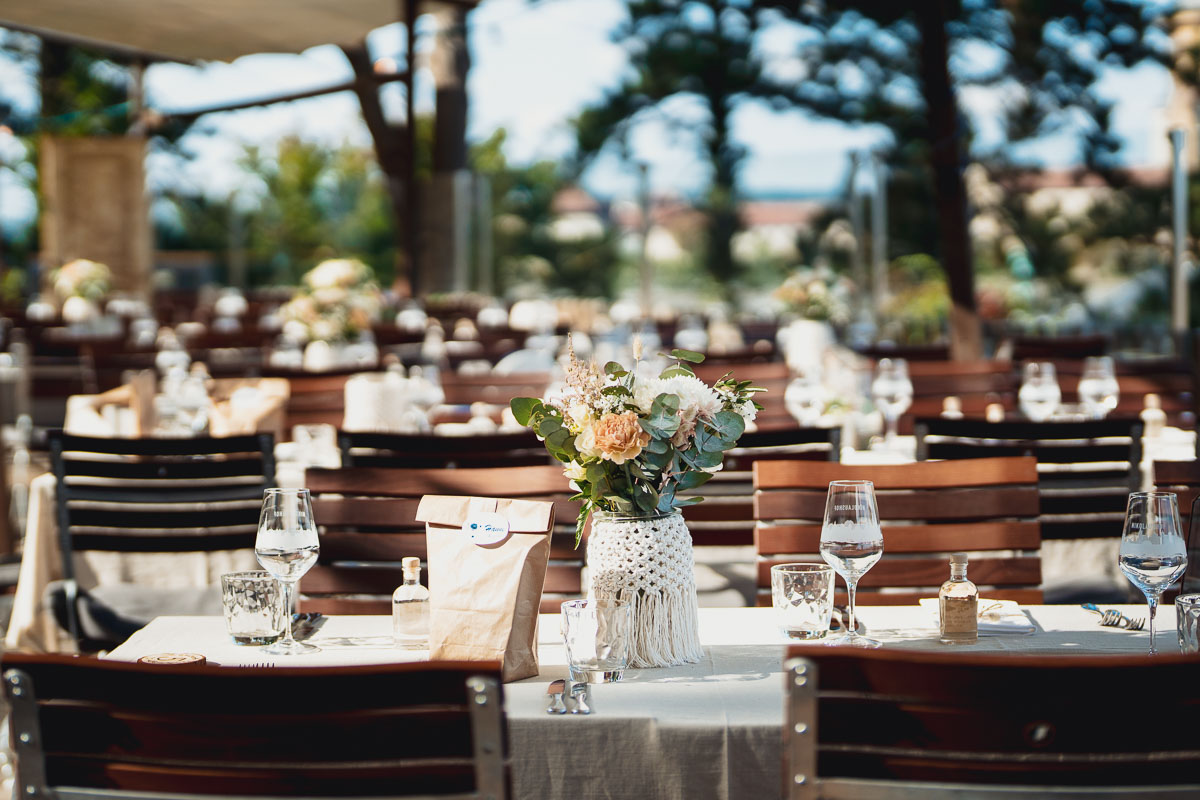 Besonders schön ist es, wenn man bei warmen Temperaturen draußen essen kann. Dann lässt sich am besten das schöne Ambiente genießen.