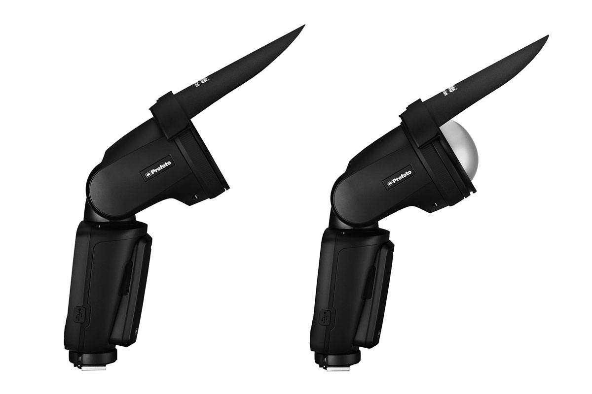 Überdies wird der Profoto mit einem sog. Dome-Diffusor, einer Bounce-Card mit weisser und schwarzer Oberfläche und einer Wide-Angle-Lens geliefert. USB-Kabel, Ladegerät, Tasche etc. runden das ganze ab. Diese werden magnetisch am Blitzkopf befestigt.