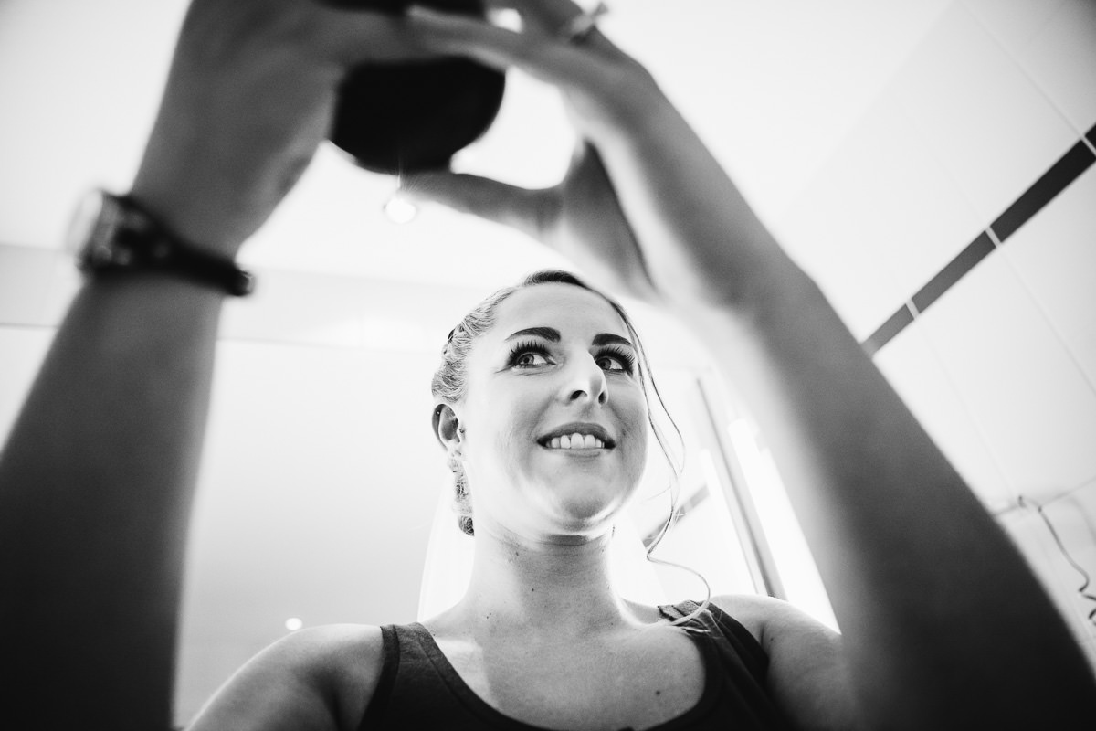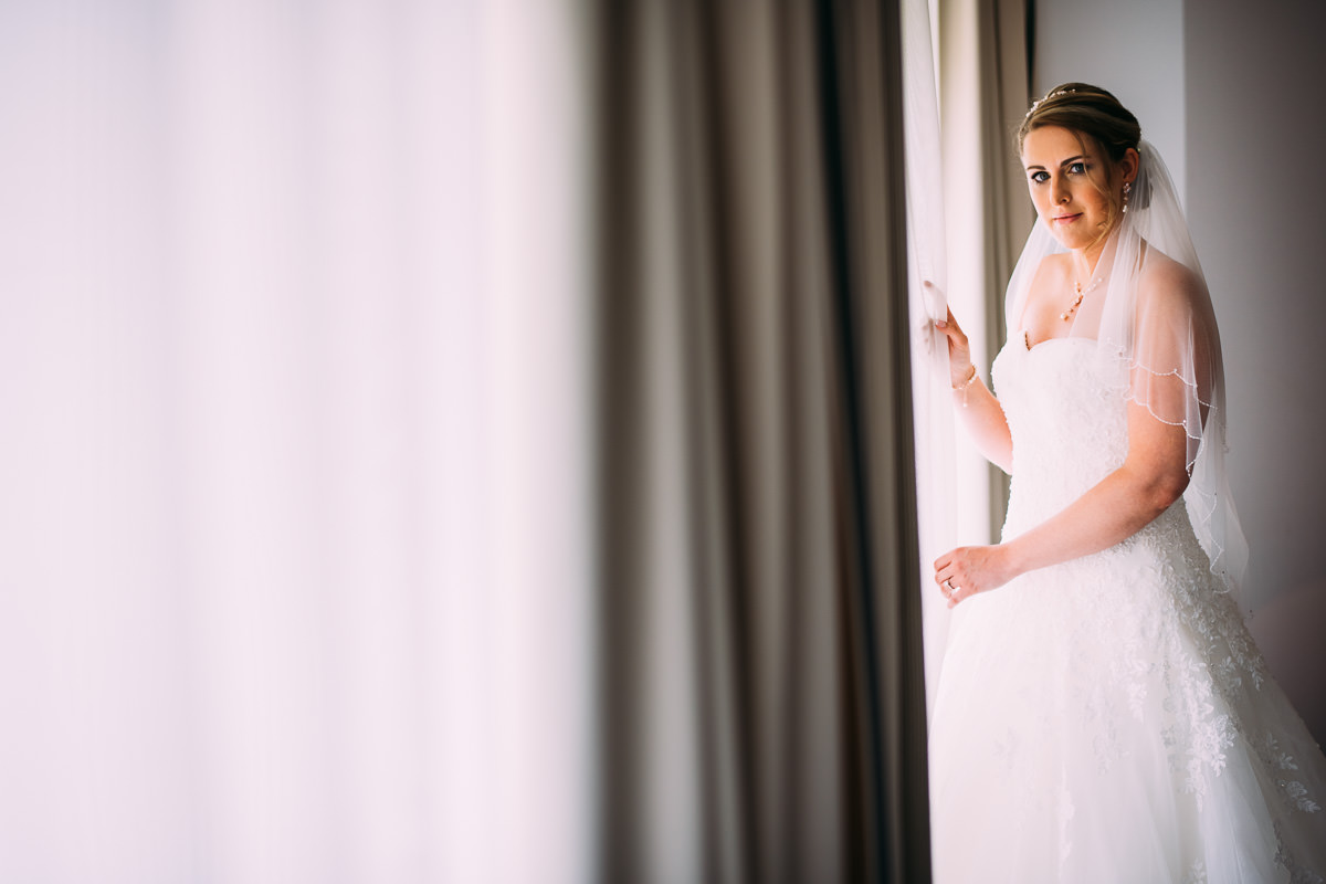 Die Brautvorbereitungen fanden in Wiesbaden statt, genauer gesagt im Dorint Pallas Hotel in Wiesbaden. Dort stand uns ein schöner grosser Raum zur Verfügung. Dieser war auch angenehm gekühlt, da an dem Tag in Juni schon sehr heisse Temperaturen draussen waren. Ein sehr angenehmer und stressfreier Start für den Hochzeitstag. Dort hat mich die Braut und Stylistin erwartet. Im Hotel fand im Anschluss auch der First Look von Braut und Bräutigam statt. Für alle Anwesenden ein ganz besonderer Hochzeitsmoment.